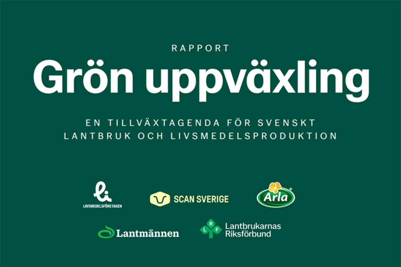 Rapporten Grön uppväxling visar att samhällets olika mål för livsmedelsproduktionen kan nås och att tillväxt kan ske på ett långsiktigt hållbart sätt.Klicka på länken för att komma till rapporten, ”Grön uppväxling – en tillväxtagenda för svenskt lantbruk och livsmedelsproduktion”.